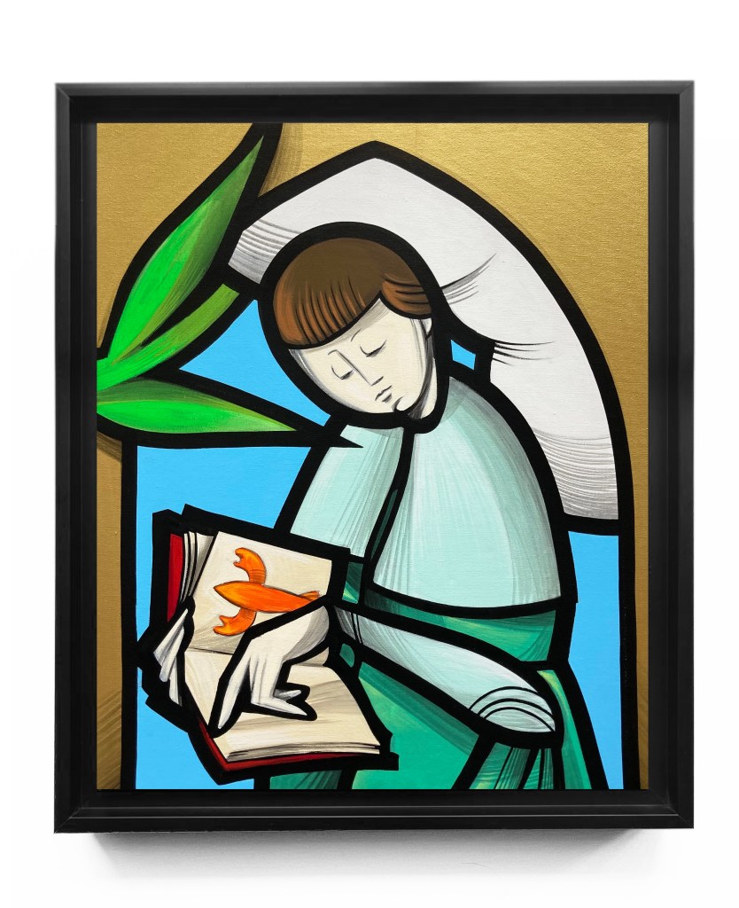 Le vitrail qui le fascine influencera l’épaisseur de son trait, ses jeux de transparences, ses couleurs.